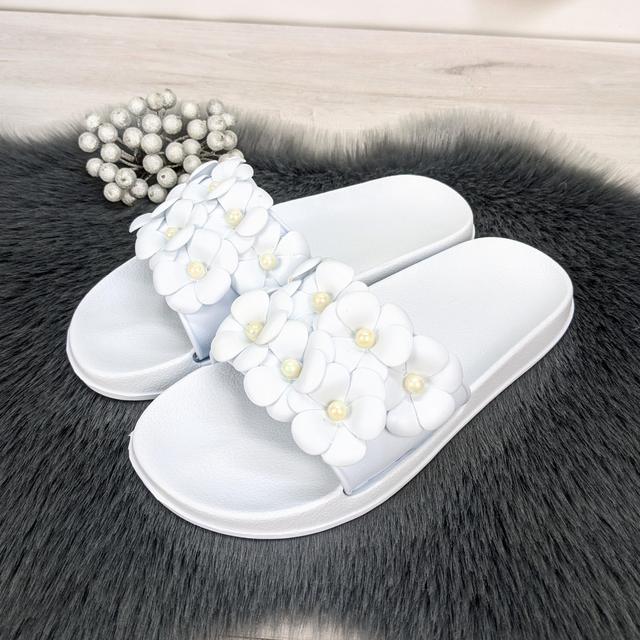 Шльопанці жіночі сланці білі з квітами Гіпаніс 2057