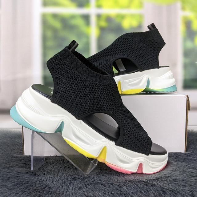 Босоніжки жіночі текстильні чорні на білій платформі 2839-2