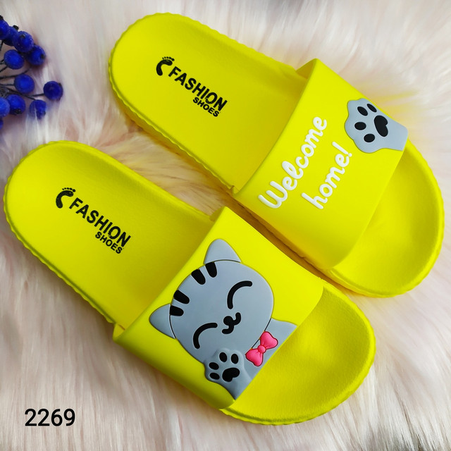 Жіночі шльопанці з котиками жовті силіконові на піні.