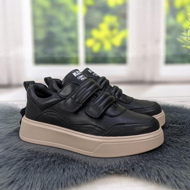 Жіночі шкіряні чорні кросівки на бежевий підошві. Демісезонний варіант.