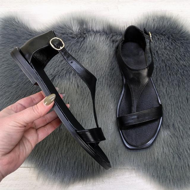 Жіночі чорні шкіряні босоніжки на низькому ходу.