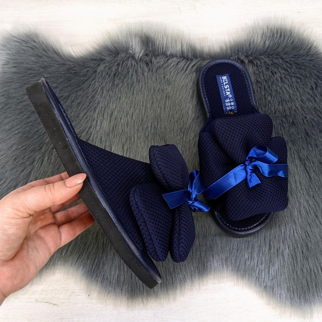 Тапочки жіночі Белста відкриті темно-сині на пінковій підошві з великим бантом