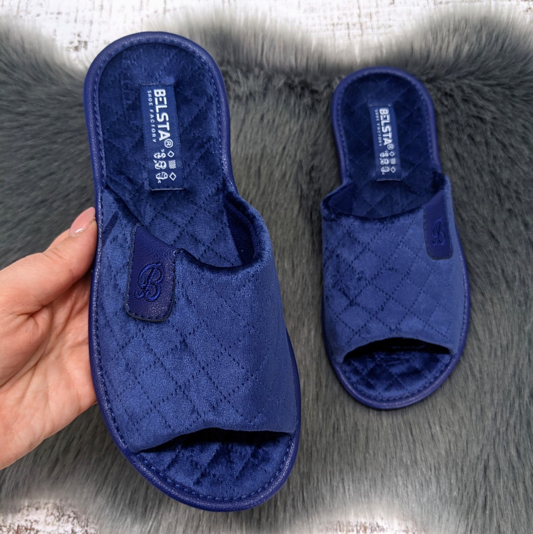 Жіночі кімнатні велюрові капці Белста з відкритим носком, синього кольору.